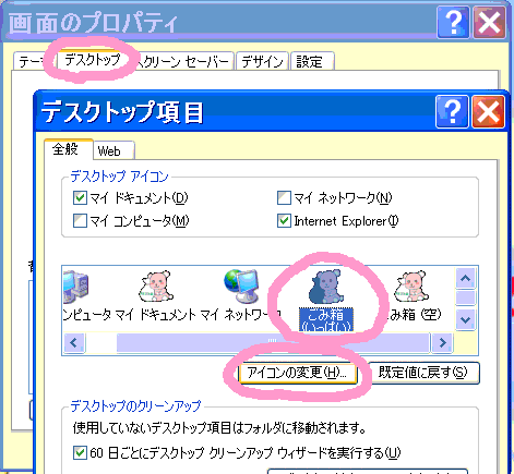 ごみ箱用アイコンの変え方。